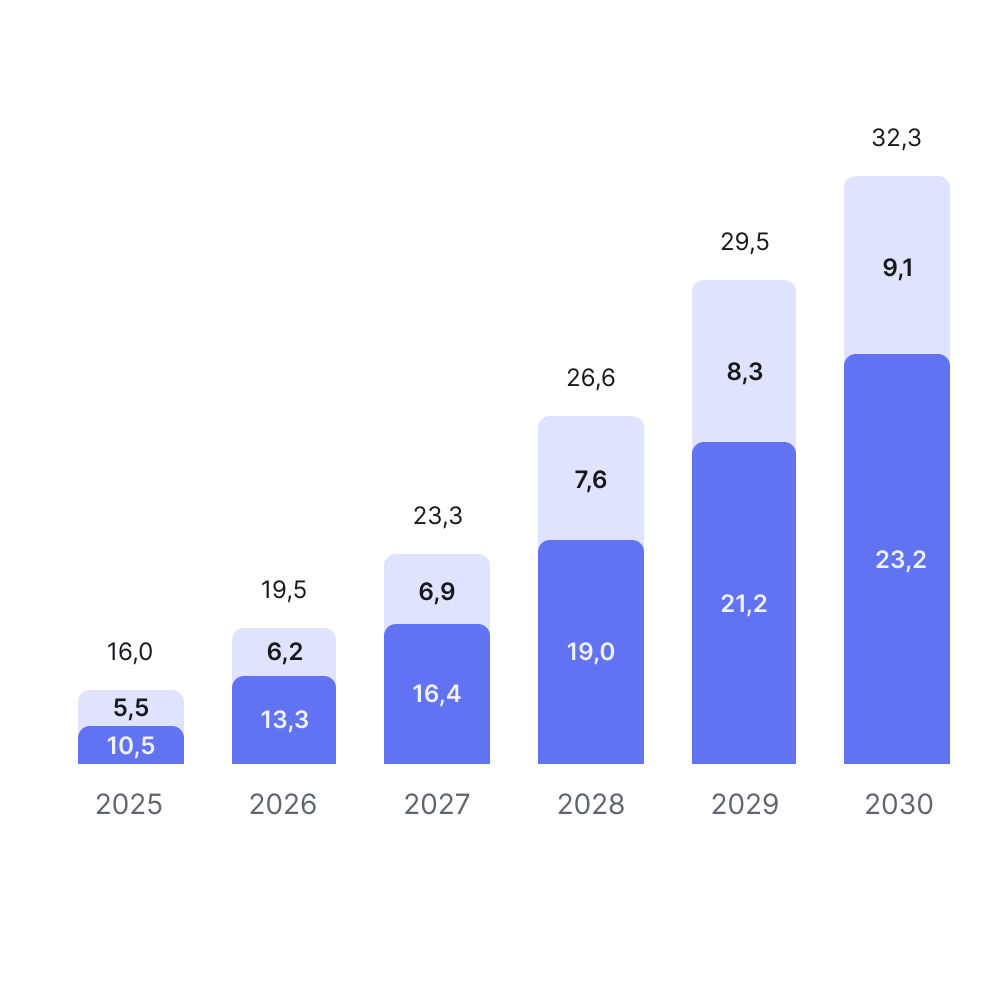 Маркетплейсы (Ozon, WB и др.) занимают ~40% всех складских площадей. По оценкам NF Group спрос маркетплейсов на складские помещения в ближайшие 3 года вырастет в 2,7 раза и составит 17 млн кв. метров